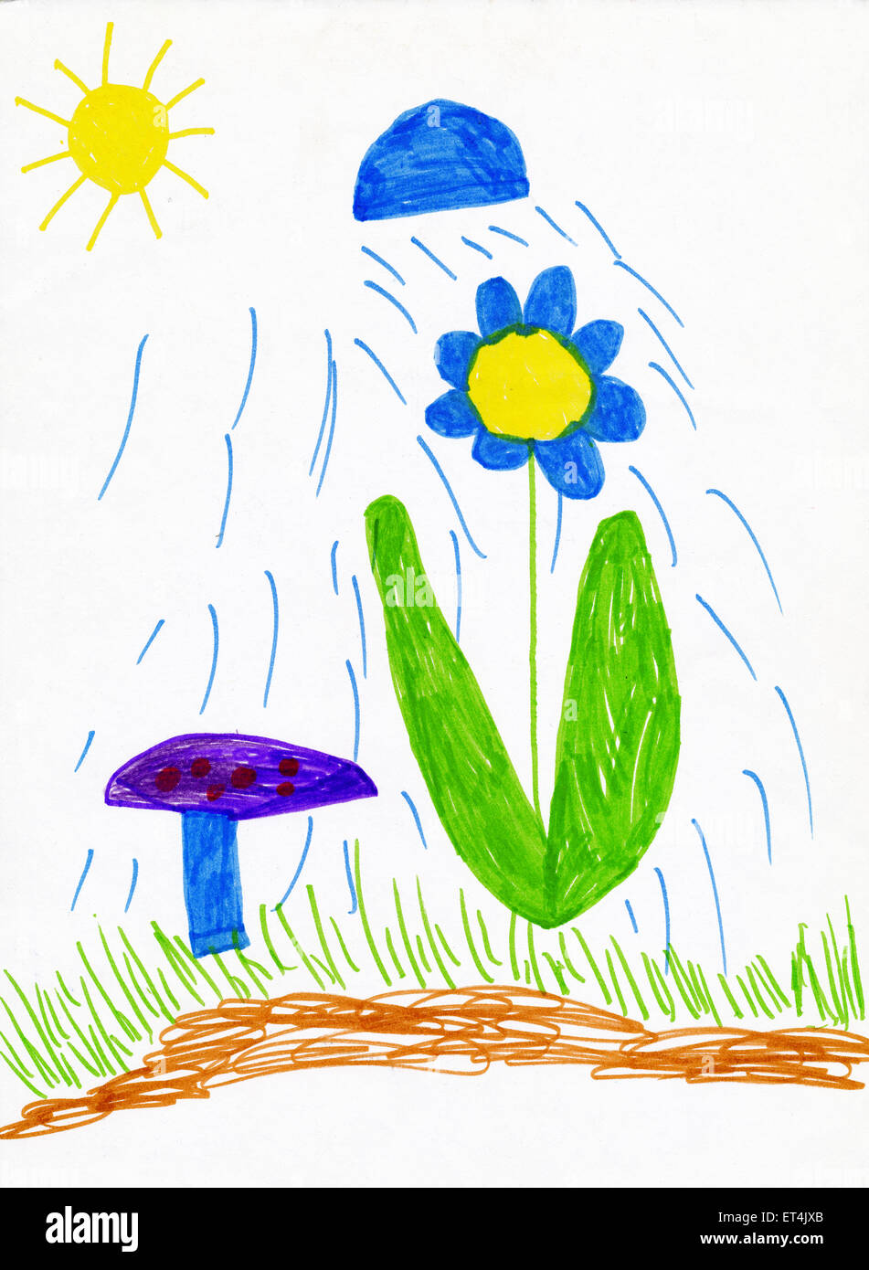 Kinderzeichnung Regen Wasser Die Blume Stockfotografie Alamy